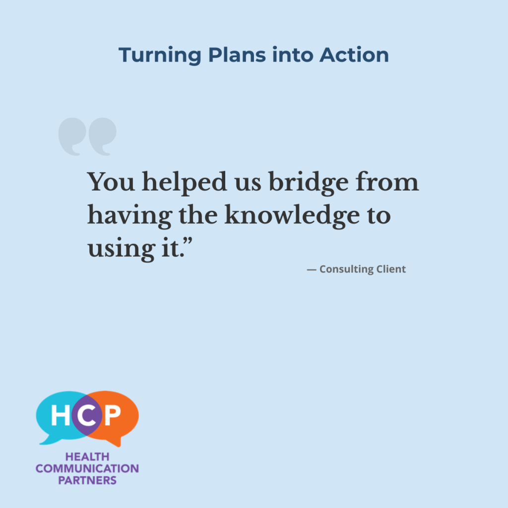 Most of my consulting clients come to me because they have a strategy or initiative that needs to turn into action. Real-life, honest-to-goodness action.